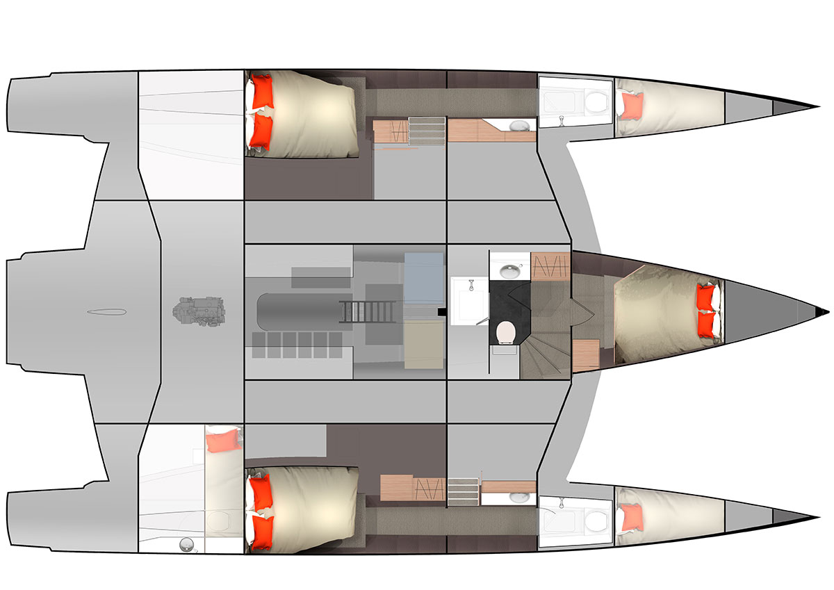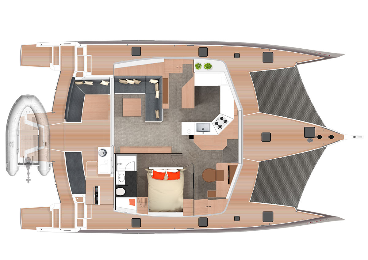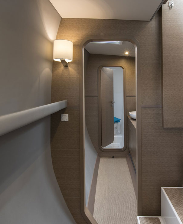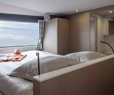 Interior is pure and elegant. The deck level master cabin offers maximum comfort and features a panormic window that provides a spectacular outlook.