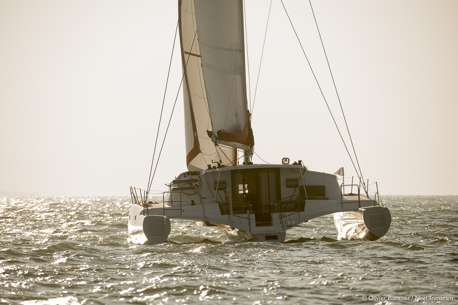 Safety aboard a NEEL trimaran is guaranteed: a trimaran is much more stable than a catamaran and offers better seakeeping.